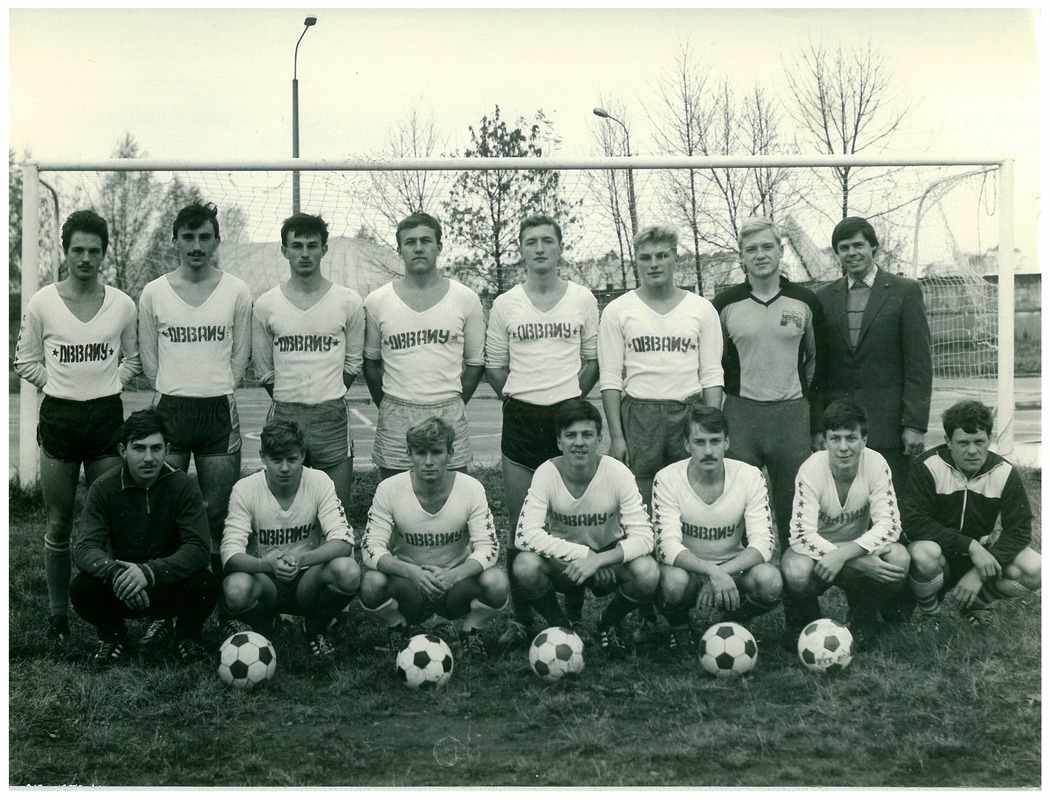 Футбольная команда ДВВАИУ, дважды чемпион Даугавпилса и финатист чемпионата войск ПВО, тренер Ю. Степанов (1990 год)