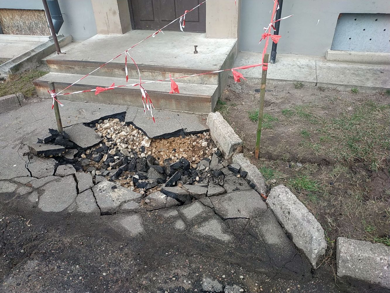 После отъезда сотрудников ГПСС возле одного из подъездов образовалась внушительная яма.