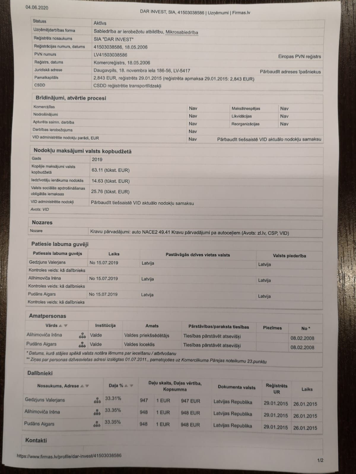 Одним из таких приближенных к строительству объекта оказался сын руководителя Управления коммунального хозяйства Айвара Пуданса – Айгар Пуданс. Именно большие красивые машины компании SIA DAR INVEST появились на строительстве объекта. Не машины Labiekārtošana-D, а частной фирмы, в которой Айгар является соучредителем.