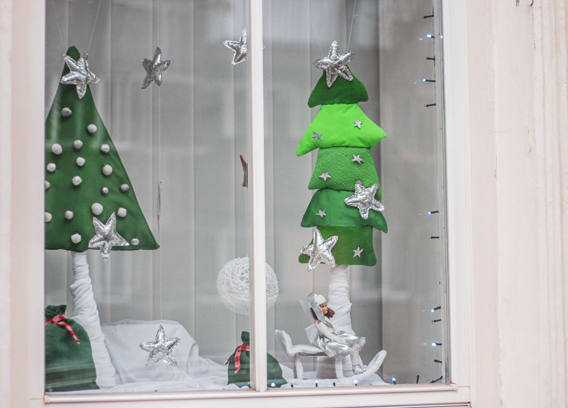 Праздничное оформление можно создать для окон, витрин, фасадов, прилегающих территорий.