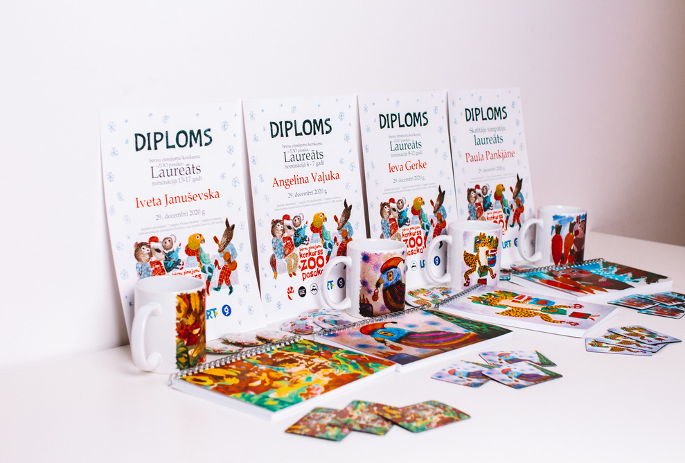 Все 4 лауреата конкурса, в том числе лауреат зрительских симпатий, получат памятные призы: набор сувениров с иллюстрацией самого автора-участника, а также бесплатный билет для семейного посещения Латгальского зоосад. Призы обеспечивали организаторы конкурса общества Radošā Laboratorija и Latgales Dizaina biedrība, а также Латгальский зоосад и grani.lv.
