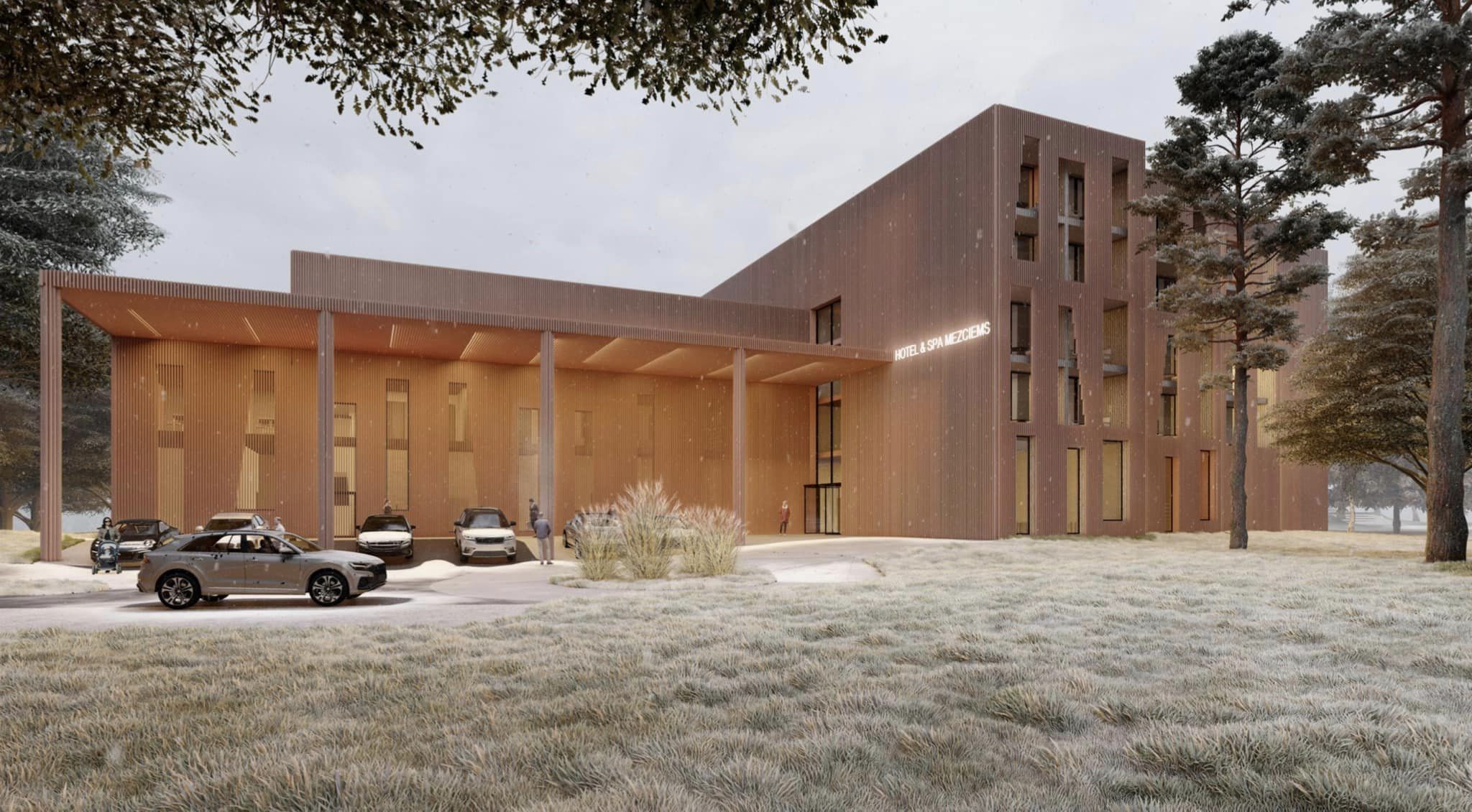 В конце прошлого года был утвержден план строительства и выдано разрешение на реставрацию и ревитализацию исторической территории санаторного комплекса «Межциемс» на улице Даугавас 131. Для проектирования нового отеля со спа-центром было использовано место сгоревшего здания.