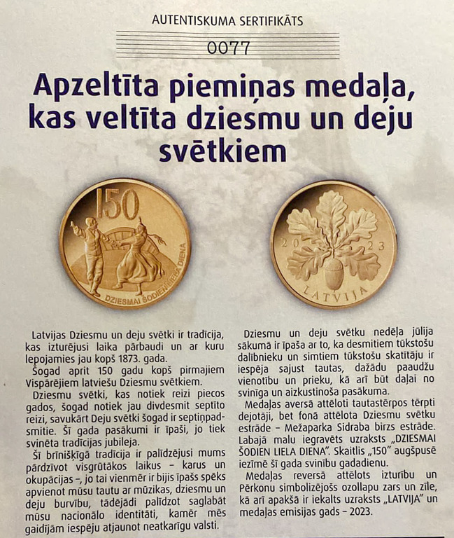 Читательница портала Grani.lv сообщила, что получила по почте посылку с коллекционными моментами, выпущенными в честь 150-летия праздника Песни и танца.