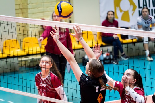 Буквально с первой минуты игры на даугавпилсской площадке началась острая борьба за путевку в финал престижнейших латвийских соревнований. Успешные атаки и хорошие блоки были со стороны обеих команд, но все же более техничную игру демонстрировали опытные рижанки, которые и одержали победу во всех трех сетах — 25:21, 25:17, 26:24.
