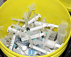 Количество сданных в «бус» на обмен шприцев постоянно увеличивается и сегодня достигает 1000 в месяц. Обывателя (и корреспондента, и фотографа «СейЧас») немного коробит, когда сотрудники бригады рассказывают, что мобильная бригада проезжает за смену все микрорайоны города, останавливаясь в каждом как минимум на 10 минут, но любой наркоман города может набрать номер мобильного телефона 29579901 – и автобус приедет в назначенное им место. Такой вот сервис – шприцы для введения очередной дозы с доставкой на дом!