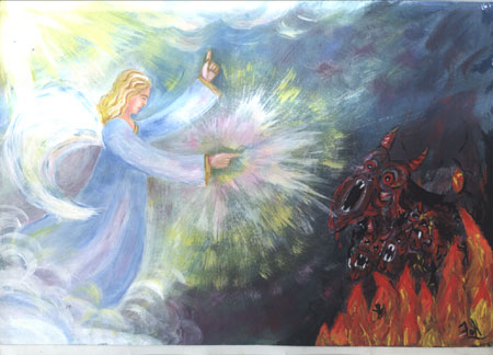2-е место жюри присудило девятикласснице Йоханне Злобиной, которая философски изобразила вечное противостояние добра и зла в нашем мире.