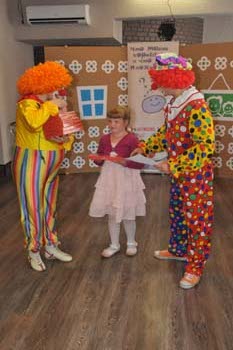 А клоуны Крута и Клева решили наградить Илуту Юревичу, ученицу 5b класса основной школы Vienības, которая нарисовала наших веселых клоунов, один из которых делает зарядку, а другой лениво валяется в постели.