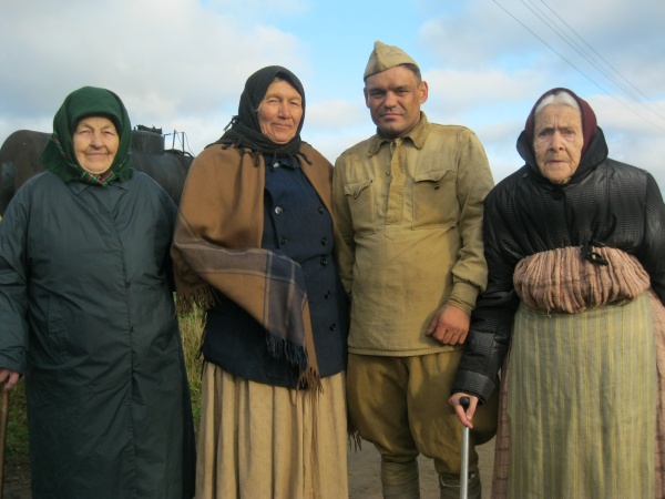 В съемках были задействованы, как говорится, от мала до велика – начиная с маленьких детей, воспринимающих процесс съемок, как игру, и заканчивая пожилыми людьми, лично пережившими настоящую войну. Как рассказала 76-летняя Анна Иосифовна, во время войны она была ещё ребёнком, но помнит, как они были в тылу у немцев, как позднее видела погибших солдат, преимущественно русских, поскольку немцы старались забрать павших в боях сослуживцев. Помнит и как позднее проходило перезахоронение погребённых солдат, что только алкоголь помогал справиться с эмоциями, вызванными видом трупов, тем, кто участвовал в процессе перезахоронения. Хочется надеяться, что военные времена навсегда останутся только на лентах кинофильмов, и никогда не повторится самая ужасная трагедия 20-го века.