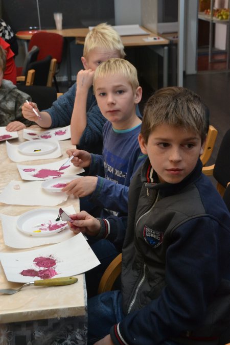 Организатор культурных мероприятий детского дома-приюта «Приедите» Ирена Цимбале привела десять своих воспитанников. Ребята шустрые, сразу видно. Ирена сообщила, что все они очень любят рисовать, активно участвуют в выставках, проходящих в приюте, и вот теперь «вышли в люди» - поучиться у специалистов. Судя по всему, художники сумели их заинтересовать.