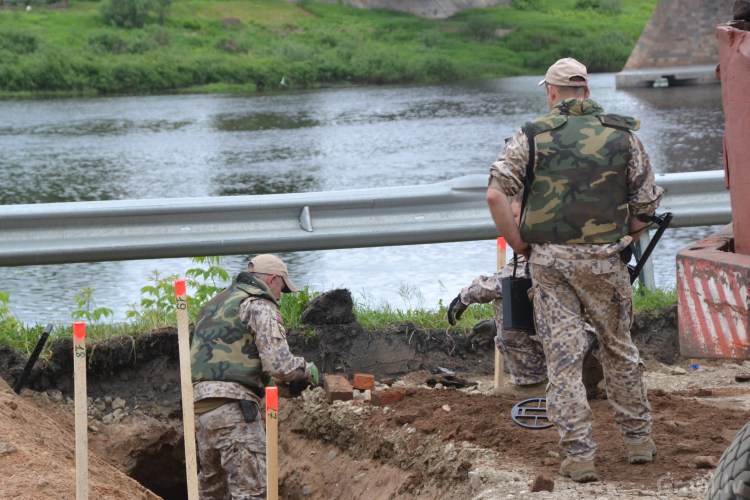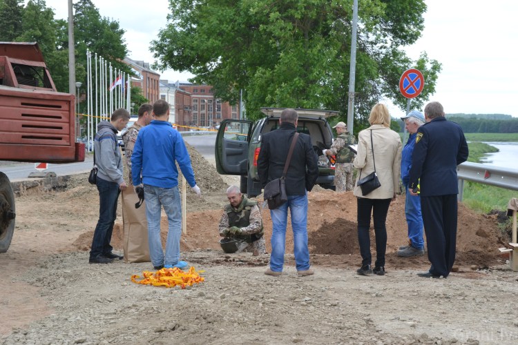 В момент вызова сапёры находились в Мелнавской волости (Вилякский край), где обезвреживали артиллерийский снаряд. В Даугавпилс третья рота 54-го инженерно-технического батальона Земессардзе прибыла после часа дня. Исследовав указанный участок, сапёры обнаружили кости скелета, каску советского воина, два противогаза, штык-нож, части пулемёта. Как оказалось, обнаруженная работниками CKDD граната, была не единственной. На поясе погибшего солдата были ещё две гранаты РГД-33. Стоит отметить, что данные советские гранаты производились и использовались до 1941 года. Патроны, найденные в диске пулемёта Дегтярёва, также датированы этим же годом. Это всё указывает на то, что найденные останки принадлежат советскому солдату, погибшему при наступлении немецкой армии в 1941 году.