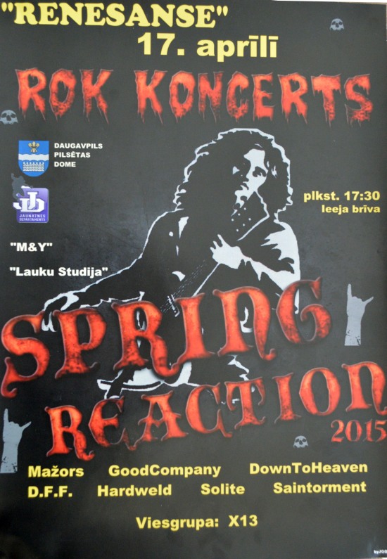 В ближайшую пятницу, 17 апреля, в кинотеатре «Ренессанс» состоится традиционный большой концерт рок-музыки Chemical Reaction. История «Химической реакции» уходит в начало 2000-х годов, когда известный знаток, подвижник и гуру рок-культуры в Даугавпилсе Генрих Барковский организовал одноимённый рок-фестиваль.