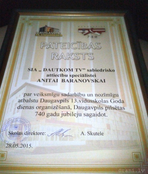 Лина Кузнецова также стала одной из первых в награждении за заслуги перед 13-й школой, так как юная певица оказалась ещё и участницей конкурсов и олимпиад по пению и биологии, а впереди её ждет большая олимпиада русского языка в Москве. Но наиболее титулованным, как и в прошлом году, стал теперь уже выпускник Валдис Мизерс, который показал выдающиеся результаты на олимпиадах по физике, информатике, английскому языку и научно-исследовательской деятельности (ZPD). Вскоре Валдису предстоит защищать честь школы и всей страны на международной олимпиаде по физике IPhO 2015 в Индии.