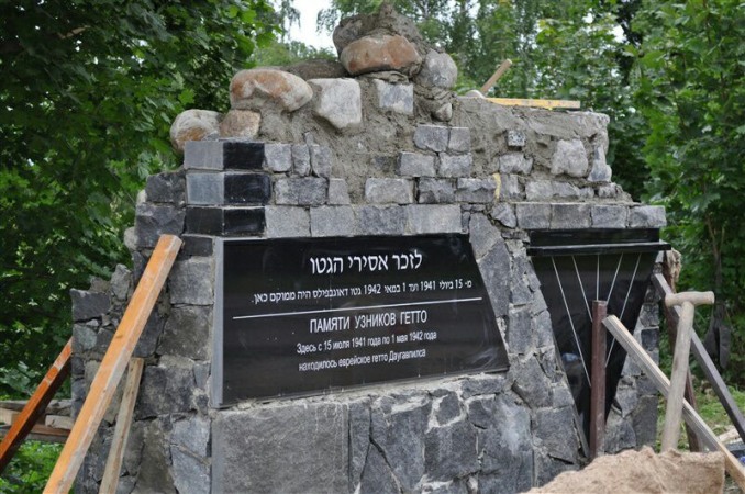 По словам председателя еврейской общины Даугавпилса Ханона Шперлинга, идея установить на месте гетто памятный знак давно витала в воздухе. В прошлом году она получила поддержку председателя городского самоуправления Яниса Лачплесиса. Договорились с SIA Kvarcits (руководитель Алена Богинич), которое безвозмездно предоставило материалы; художник Юрис Пундурс разработал эскиз памятного знака. Знак будет состоять из двух плит, где на четырех языках – иврите, английском, русском и латышском – будет содержаться краткая информация о гетто. Одна плита уже почти готова.