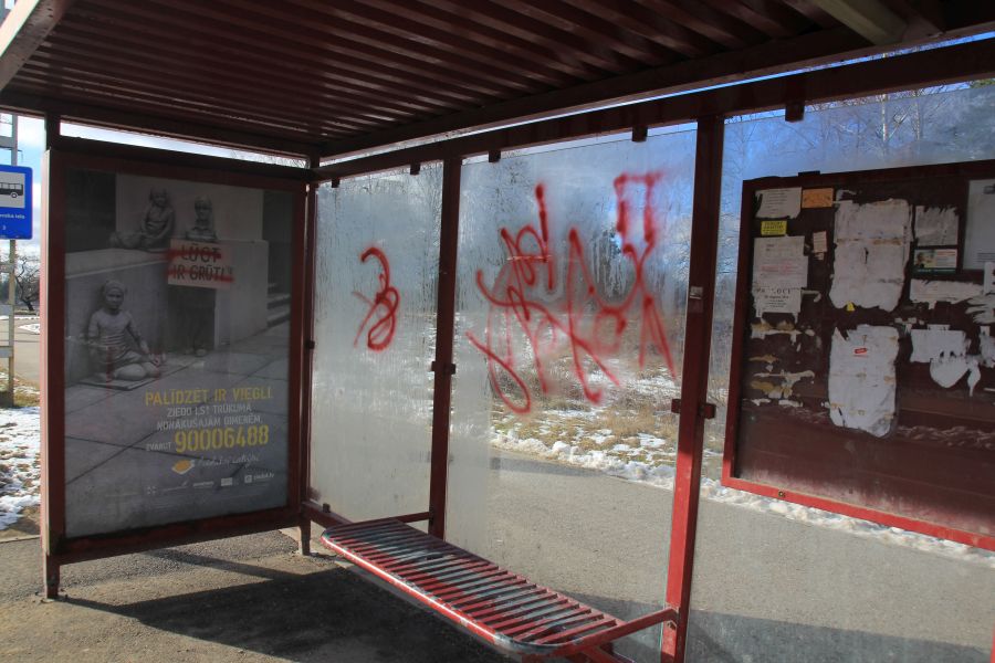 Недавно вандалы «пометили» самый «хвост» улицы Ятниеку. Их жертвами пали био-туалет, стенд с описанием проекта строительства католического храма и автобусная остановка. Дальше по пути следования хулиганов объектов не было, поэтому они ограничились этими тремя.