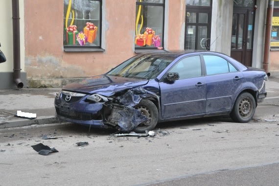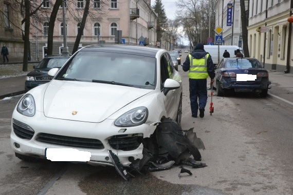 На улице Саулес рядом со зданием Даугавпилсского университета столкнулась автомашина Mazda и Porsche Cayenne. У обоих транспортных средств покорёжена левая сторона возле водительского места и вывернуто по одному колесу.