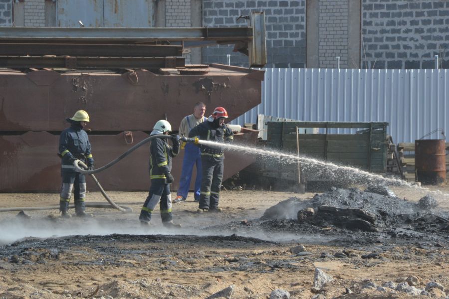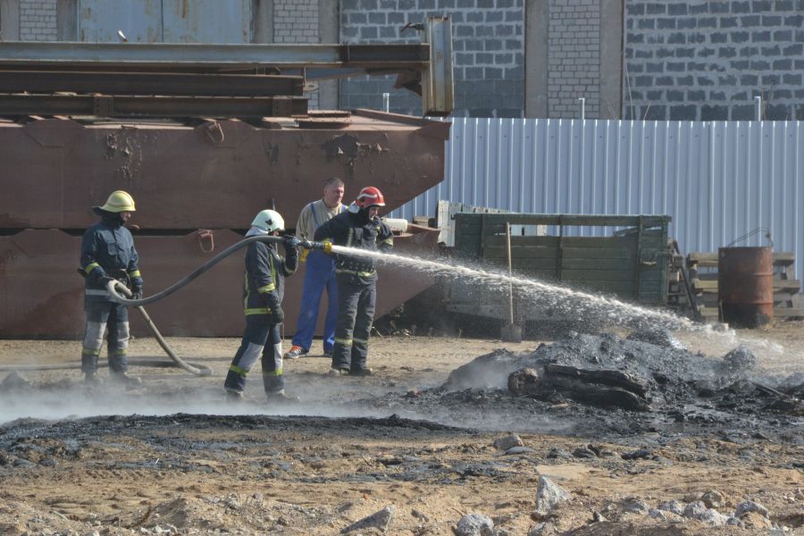 По словам очевидцев, на улице Стиклу 18А произошло возгорание нескольких десятков старых покрышек и нефтепродуктов, разлившихся на территории предприятия.