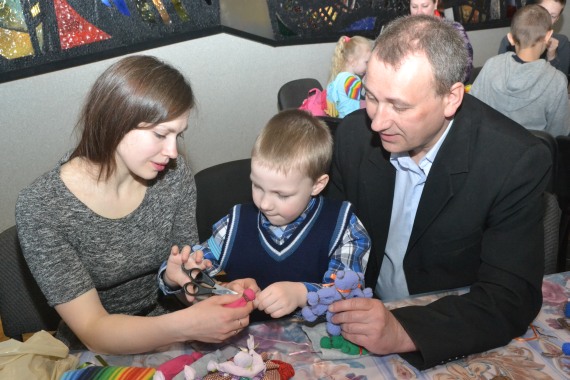 На празднике работали творческие мастерские, где дети с родителями учились делать мягкие игрушки, ангелочков из синтетических материалов, кукол, оберегающих семью, веселых зайцев (еще одна Пасха не за горами) и т. д.