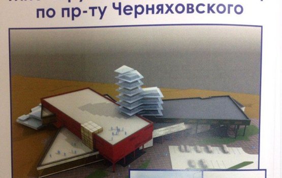Многофункциональный центр по проспекту Черняховского. Предполагается размещение объектов следующего назначения: оздоровительное, спортивное, фуд-корт, мультимедийное пространство, хостел, бизнес-центр, торговля. Предполагаемый объем инвестиций - 10 млн. долларов США.