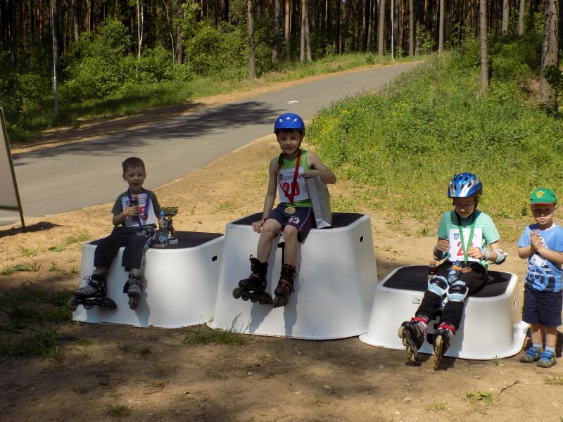 Правда, и тут желающие испытать себя на трассе вместе с другими находили выход из положения – попросту передавали те же шлемы друг другу. Поэтому соревнования проходили в несколько этапов. А первыми на старт вышли трое самых маленьких роллеров. Им предстояло пройти свой отрезок змейкой. Первым из них финишировал 8-летний Давид Данилов, оставивший за собой 5-летнего Эмиля Данилова и 10-летнего Мартина Роголева. Позднее к участникам присоединился 7-летний Натан Самуйлов. Однако бежал он вместе со старшими участниками полный круг, который преодолел за 11 минут.