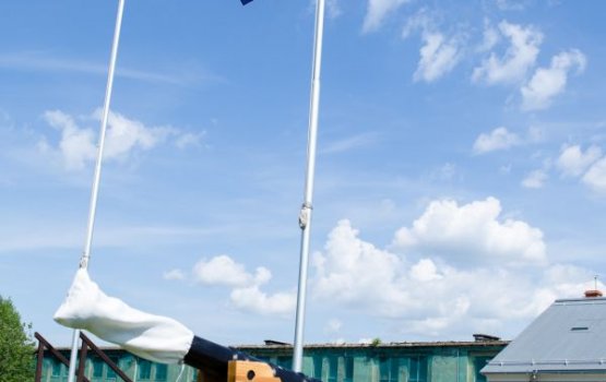 Сегодня, 2 июня, в 9 часов утра в Даугавпилсской крепости под выстрел малой пушки был поднят флаг. Хотя с утра эти артиллерийские маневры проходили почти при полном отсутствии зрителей, посмотреть на пушечный выстрел в 12:00 пришли ученики сразу нескольких младших классов городских школ.