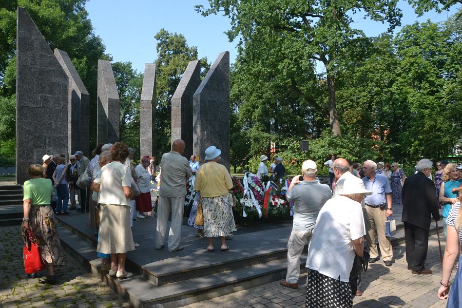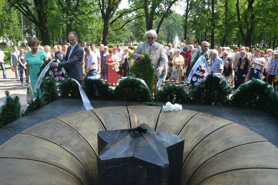 Венки и цветы к мемориалу в парке Дубровина возложили заместитель председателя городской думы Петерис Дзалбе, глава Генерального консульства Российской Федерации в Даугавпилсе Олег Рыбаков, консул Генерального консульства Республики Беларусь в Даугавпилсе Антонина Струневская, депутат Европейского парламента Татьяна Жданок, представители ДОБАК, обществ военных пенсионеров и малолетних узников концлагерей, национально-культурных обществ, депутаты городской думы и другие неравнодушные к этой дате лица.