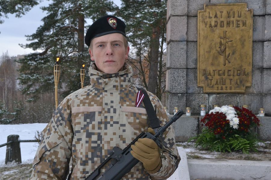 По уже сложившейся традиции в полдень 11 ноября у памятника защитникам Отечества на лютеранском кладбище было многолюдно: здесь началось памятное мероприятие в честь Дня Лачплесиса. Духовой оркестр Daugava под руководством Арнольда Гринберта придал еще большей торжественности моменту, исполнив гимн страны и марши.