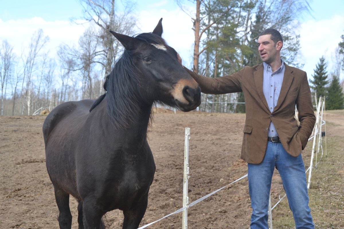 – У нас живут 13 лошадей, скоро будет 14 – на свет появится жеребенок. Породы разные, преобладают латвийские упряжные, но есть и белорусские, и литовские лошади. Все они обучены, участвуют в разных мероприятиях, в том числе в городских праздниках. Мы регулярно гостим в Краславе, Даугавпилсе, Аглоне, Прейли. Лошади привыкли к людям, не боятся шума, громкой музыки, даже стрельбы – принимали участие в исторических реконструкциях в Даугавпилсской крепости. Императорскую пару на бал Марты привезут сестры – Селда, ей шесть лет, и Сканда, восемь лет. Хороши девки! У них один шаг, они прекрасно ладят друг с другом; можно сказать, что сестры – слаженная команда. Селда и Сканда – звезды латвийской породы, они бывали и на сцене Даугавпилсского театра, – рассказывает хозяин Klajumi Виктор Пильщиков.