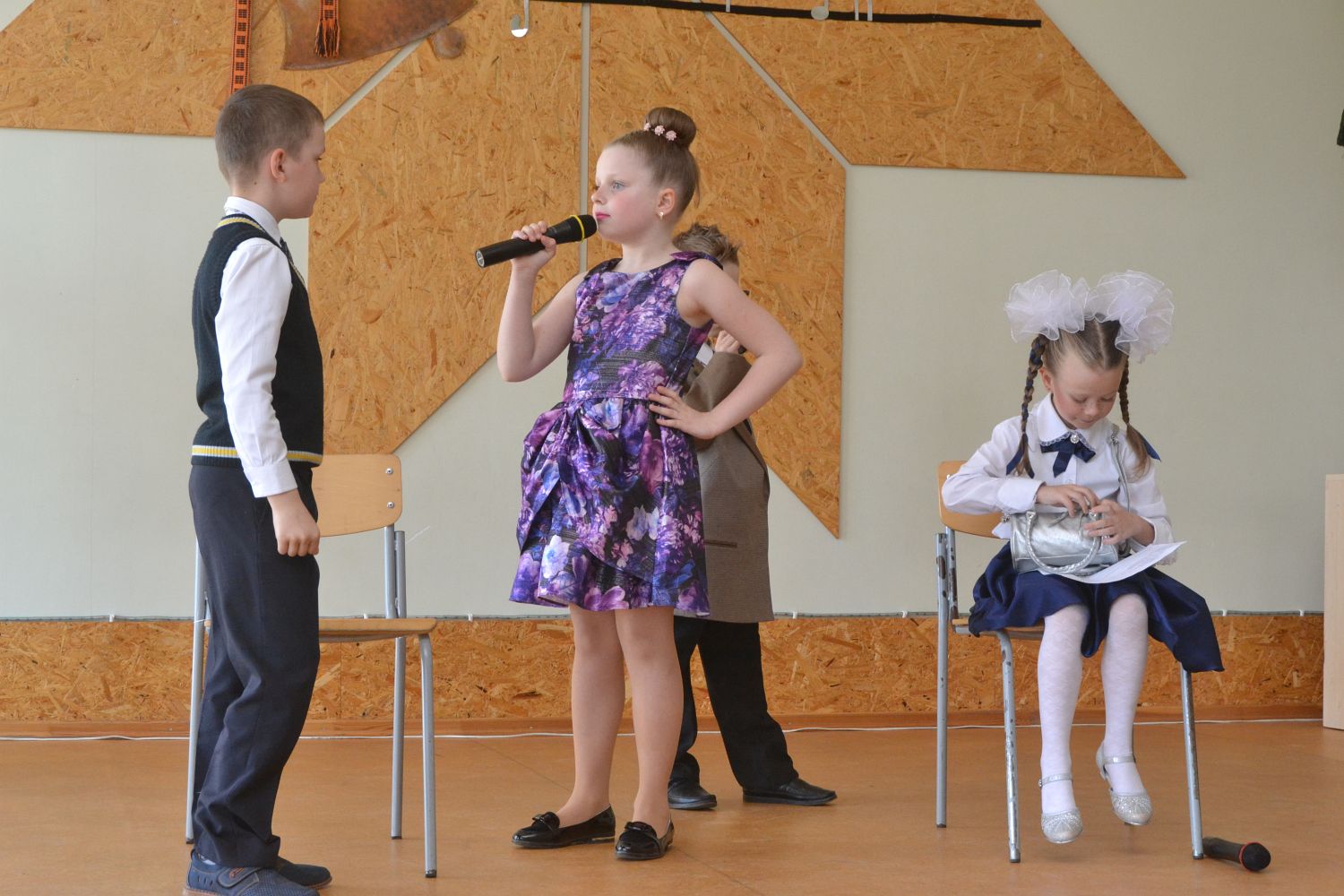 Первоклассники поразили своими сценическими талантами, довольно профессионально представив предстоящий двенадцатиклассникам экзамен по математике, а суровый маленький наблюдатель с лупой сорвал целую бурю оваций.