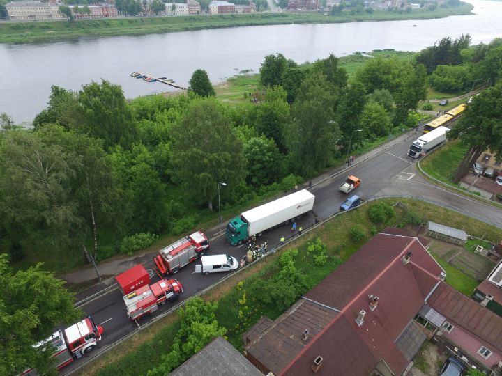 Как рассказывают очевидцы, на выезде с улицы Селияс на улицу Лиела фура не пропустила Volkswagen Sharan, едущий по главной дороге. В результате легковая автомашина врезалась в грузовик. Удар пришелся как раз в топливный бак.