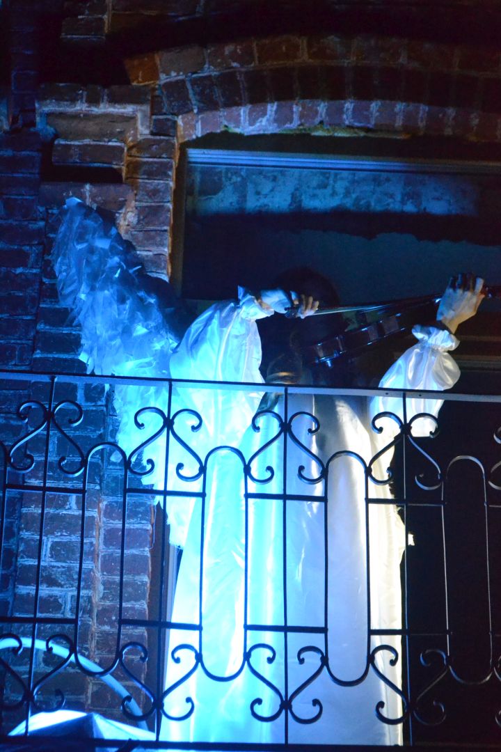 Как и в прошлом году, на балконе играл на скрипке полюбившийся горожанам Ангел Света (девушку на самом деле зовут Светлана – примечание Л. В.), на этот раз он еще и бумажные самолетики пускал с разными добрыми пожеланиями.
