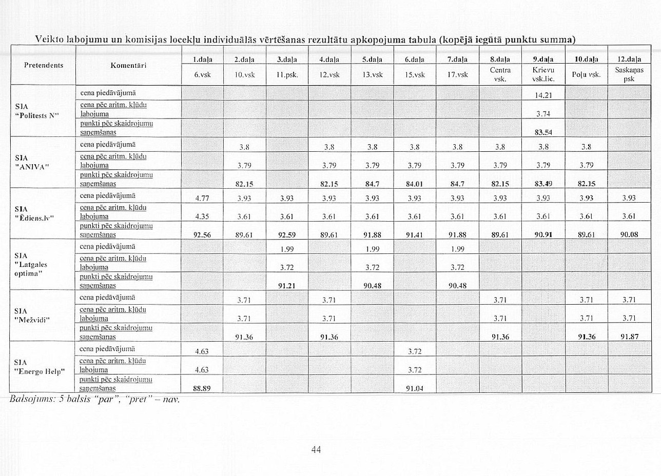Именно при мэре Андрее Элксниньше фирма Ēdiens.lv в итоге выиграла конкурс с минимальным перевесом по пунктам. Например, местная фирма Energo help получила за свое предложение в отношении 15-й средней школы 91,04 балла, а Ēdiens.lv – 91,41. Разница в один-два, а то и неполный балл стала решающей, хотя администрация школ, где в итоге работает Ēdiens.lv, в открытую заявляет о том, что коммерсант не соблюдает заявленные им же договоренности с поставщиками продуктов из биологических хозяйств. Даже кисломолочные продукты хранятся без холодильника – при комнатной температуре. Что уж говорить о «биологических» овощах!