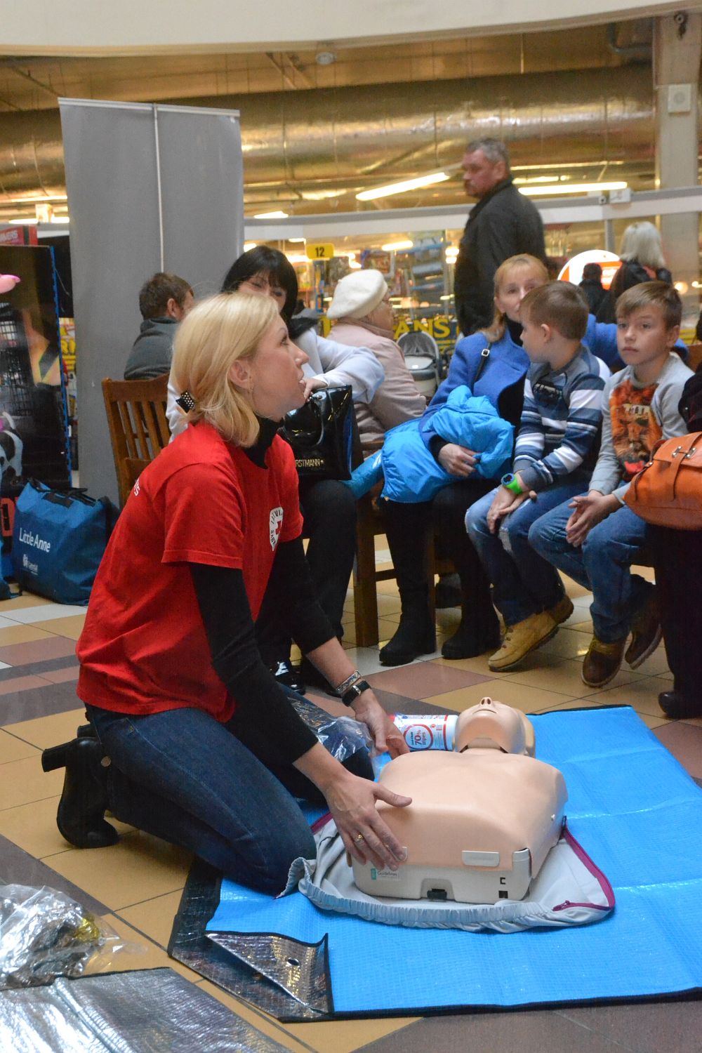Сегодня в торговом центре Ditton Nams состоялось первое занятие, в ходе которого любой желающий мог научиться делать искусственное дыхание и массаж сердца, узнать, как поступить, если у человека сломана рука или он упал в обморок.