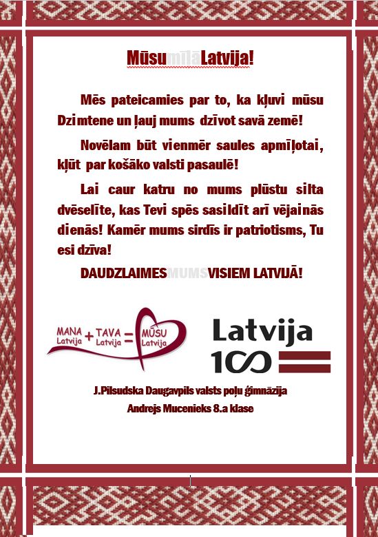 Обязательным условием было не просто поздравить Латвию, показав свои любовь и патриотизм, но сделать это от всей души, хорошо подумав над текстом поздравления, чтобы он получился сердечным, настоящим.