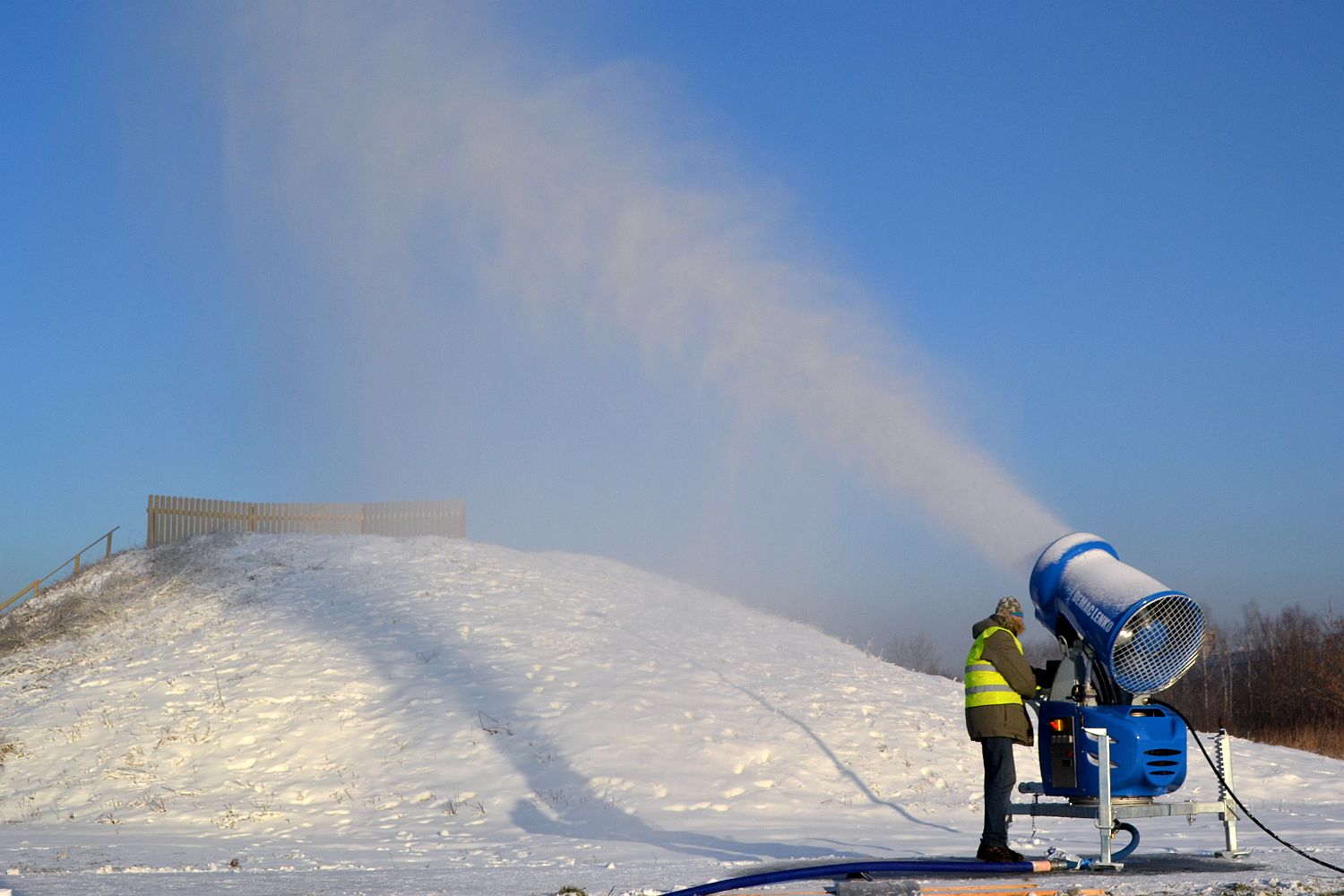 Как известно, у самоуправления есть пушка, которая производит искусственный снег. С ее помощью уже в прошлом году была засыпана большая горка в микрорайоне Эспланада.