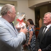 Прием всегда ассоциируется с приветствиями, рукопожатиями, улыбками и ароматом цветов, которых море! Гостей встречали и принимали поздравления, букеты и памятные подарки Владимир Васильевич Климов и его супруга Ирина Викторовна. Эта чета вместе уже 30 лет.