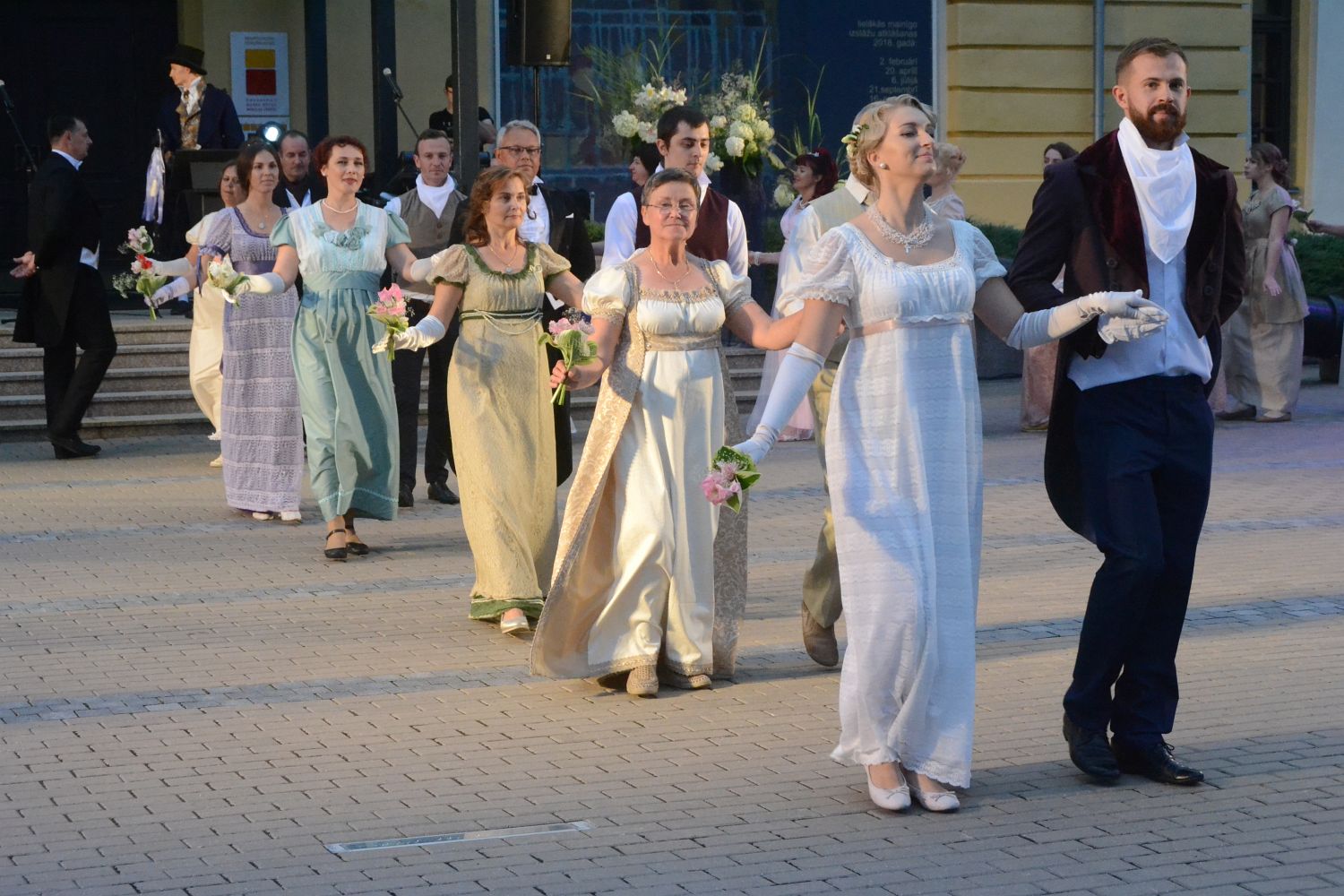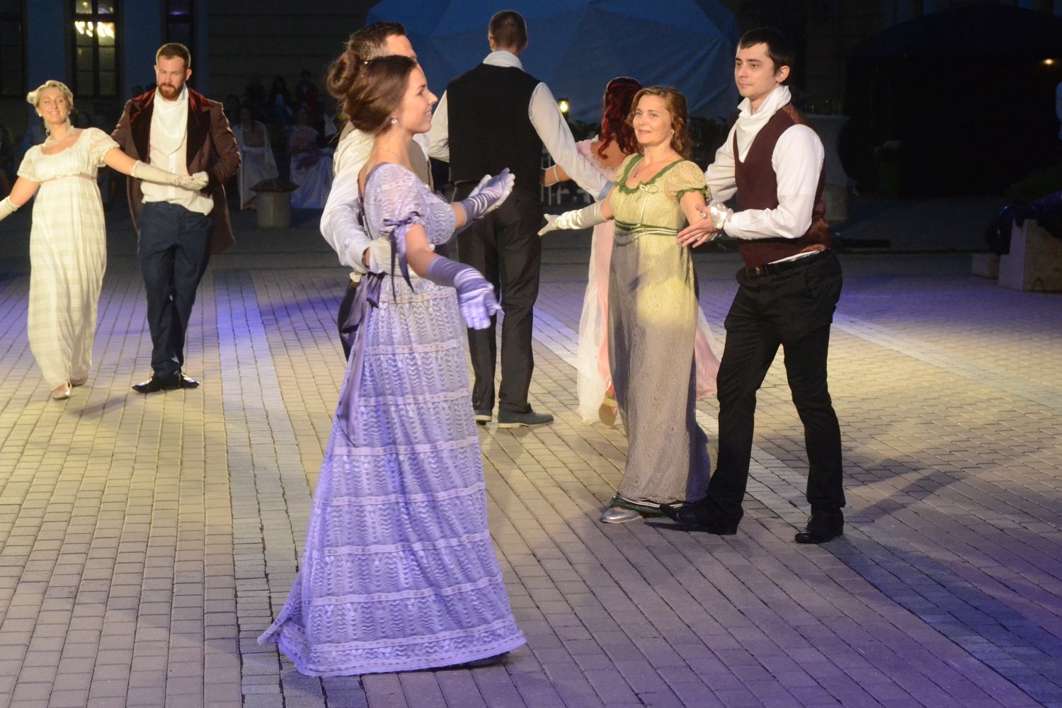 Главными участниками вечера стал танцевальный коллектив студии Елены Пастернак и Souldance. На площадке во дворе возле артиллерийского арсенала можно было наблюдать вальс, менуэт, гусарскую и берлинскую польку, русский марш и другие исторические танцы.