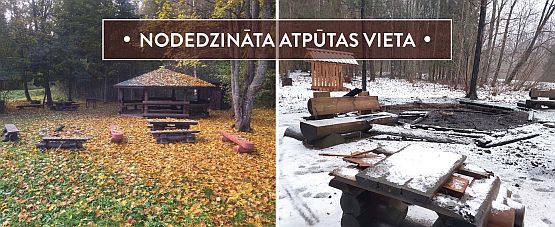 На официальной странице Latvijas valsts mežu vēstniecība появилась информация о том, что ночью 9 декабря злоумышленники уничтожили место отдыха в лесу около Ницгальского большого камня.
