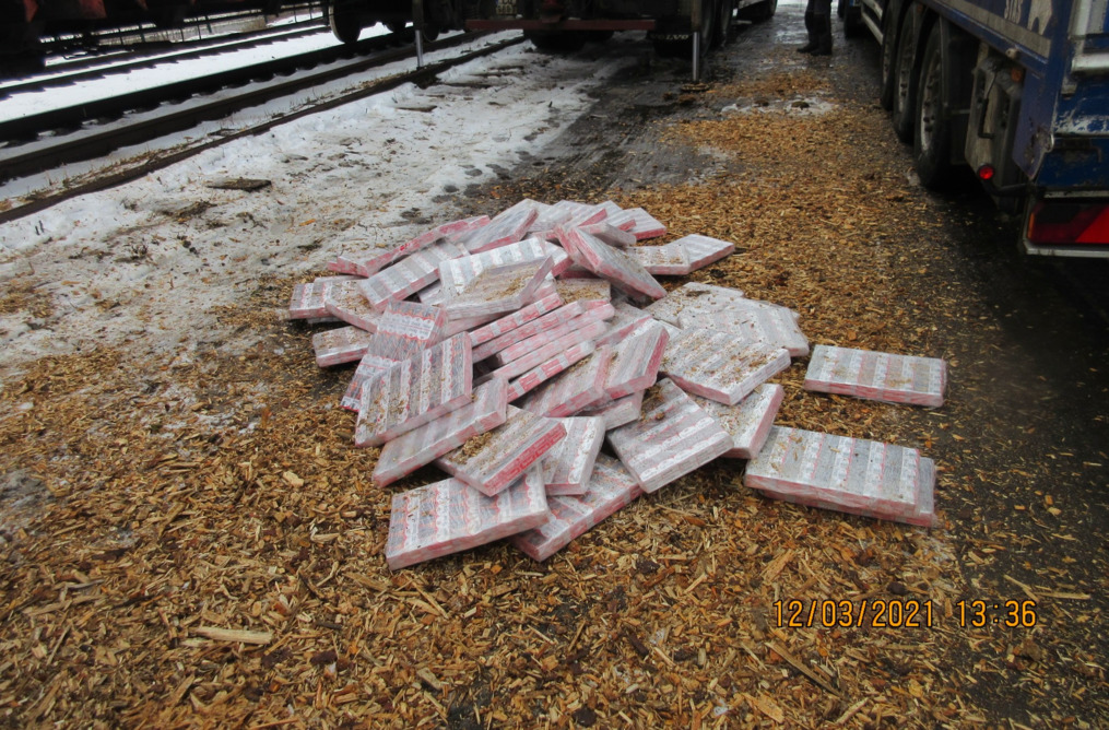 Таможенники на прошлой неделе в грузовых поездах обнаружили 60 411 пачек нелегальных табачных изделий, которые были ввезены из Беларуси в древесной щепе.