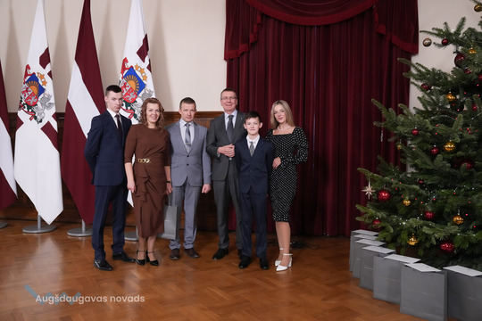 Из Аугшдаугавского края в гости к президенту отправилась большая семья Лаздансов, проживающая в Ликсненской волости. Семья Лаздансов, которая в 2019 году вернулась в Латвию после десяти лет жизни в Норвегии, воплощает ценности, связанные с любовью к родине, семейными традициями и вкладом в развитие своей страны. Сейчас она управляет сертифицированным экологическим фермерским хозяйством «Яунозоли», где занимается садоводством и выращиванием фруктов.