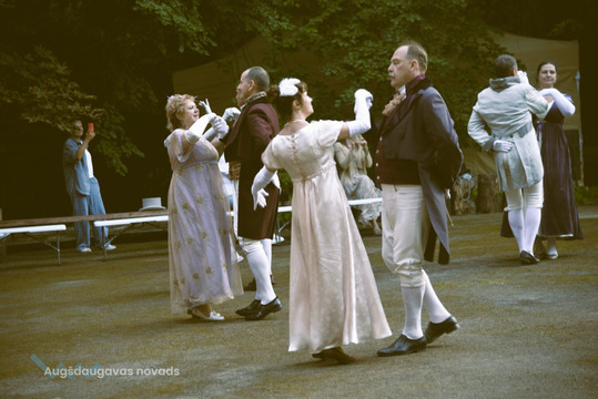 Участники праздника нарядились в костюмы дам и господ того времени и погрузились в атмосферу размеренного летнего отдыха, сообщает Аугшдаугавское краевое самоуправление.