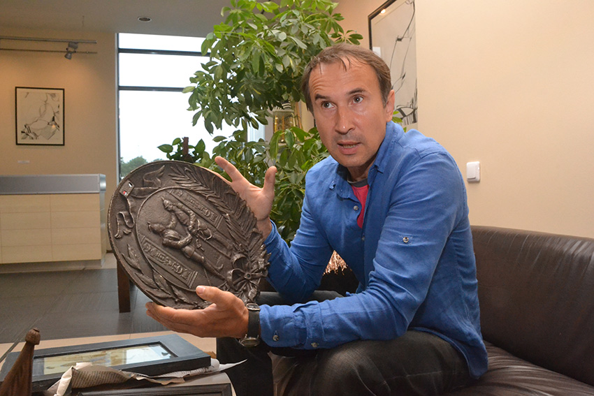 В свою очередь, баварская тема звучит в отношении симпатичных металлических рюмок со львами и вензелями. Олег утверждает, что исторические раритеты вполне можно обнаружить даже в городских мусорниках. Именно там он случайно нашел уникальный фотоснимок в деревянной рамке, сделанный в динабургском ателье Розенберга. При этом фотография служивого 50-го драгунского Иркутского полка совмещена с рисунком.