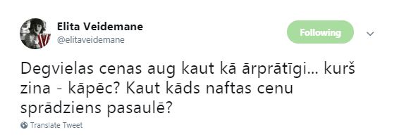 На подорожание бензина обратила внимание латвийская журналистка Элита Вейдемане.