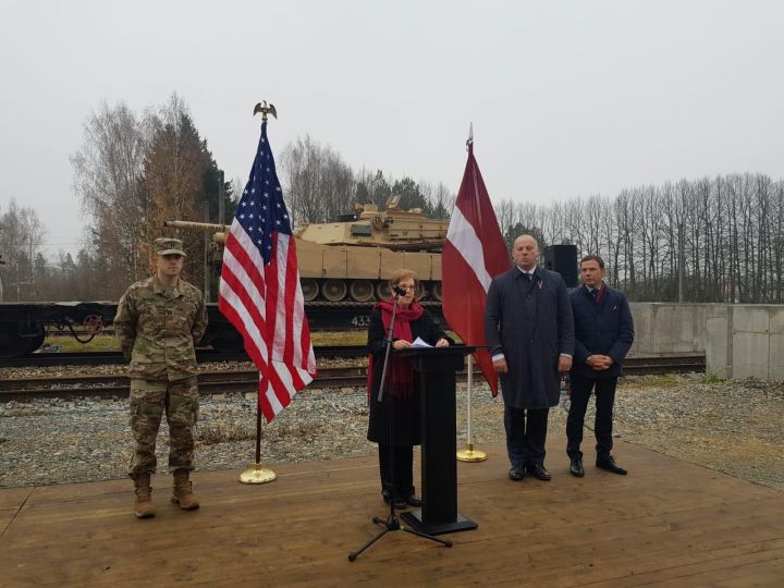 В мероприятии приняли участие министр обороны Раймонд Бергманис, командующий НВС Леонид Калниньш и американские союзники в лице посла США в Латвии Ненси Петит.