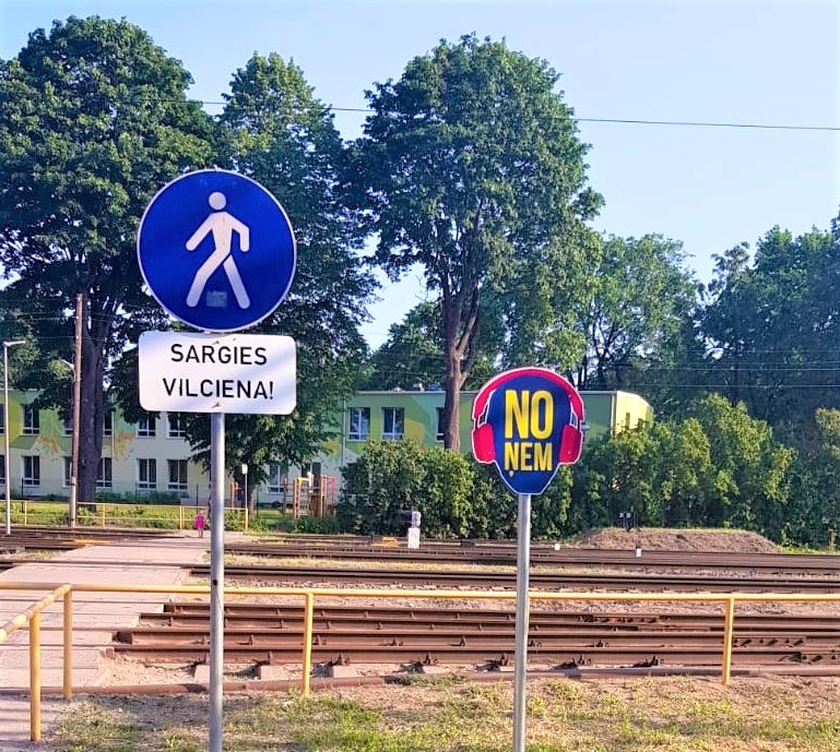 Предприятие Latvijas dzelzceļš установило возле железнодорожных переходов предупреждающие знаки для молодых людей. Кампания призывает молодежь снимать наушники возле железных путей.