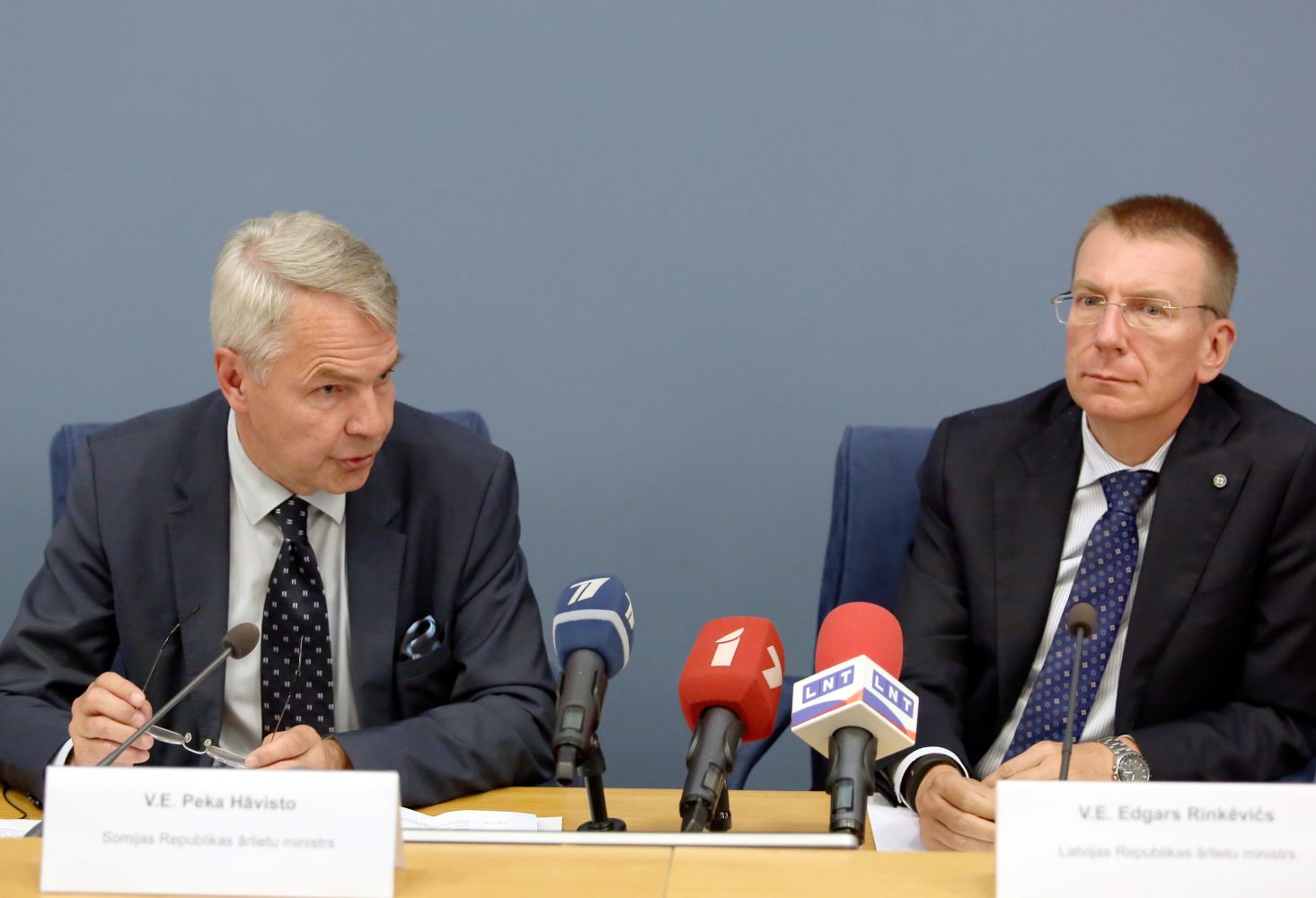 Глава МИД встречался с министром иностранных дел Финляндии Пеккой Хаависто, который прибыл в Ригу для обсуждения ряда вопросов, в том числе о задержанном в Ормузском проливе 19 июля британском танкере, на котором находится латвийский гражданин.