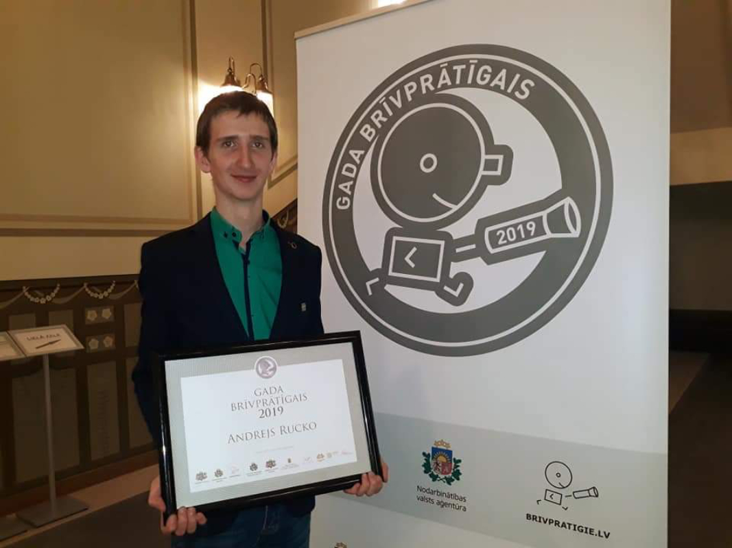 «Нас награждали во Дворце культуры «Зиемельблазма». Из разных уголков Латвии в общей сложности было подано 162 заявки. Из них для награждения отобрали шесть волонтеров и одну волонтерскую организацию. В церемонии участвовали важные и узнаваемые в Латвии персоны, -- продолжает Андрей Руцко. – Меня награждал лидер Ghetto Games Р. Элбакян. Остальных победителей - другие известные лица. На церемонии присутствовала министр благосостояния Рамона Петравича.