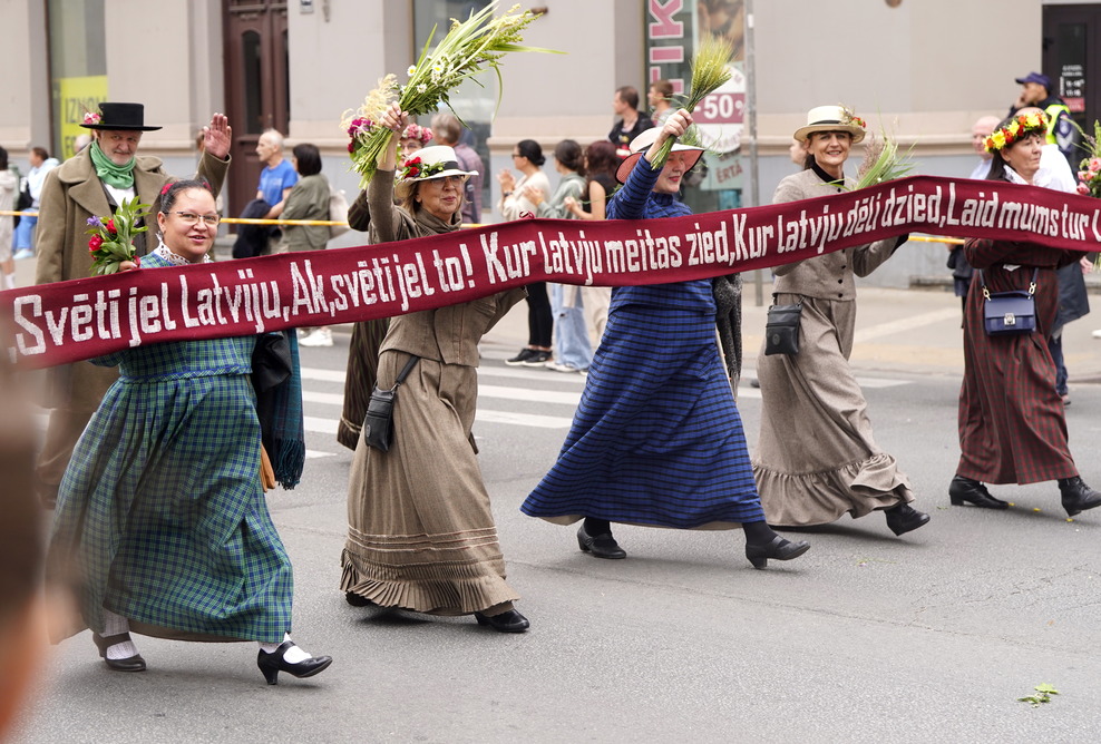 В шествии участников Праздника песни и танца в воскресенье приняли участие почти 45 000 человек из 1800 коллективов. Шествие началось в 10:00 у памятника Свободы и закончилось около 18:30 у театра «Дайлес».