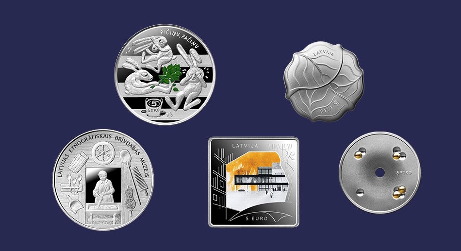 В целом в прошлом году было выпущено пять коллекционных монет, посвященных латвийской культуре, истории и другим важным темам. Вот они: