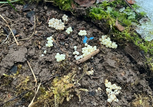 Если во время последних осенних работ в саду под листьями, досками или в компосте вы заметили белые, непрозрачные, перламутровые шарики — знайте: это яйца испанского слизня, предупреждает Управление охраны природы.