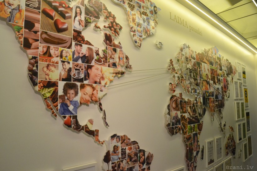 Большая карта на стене демонстрирует экспорт сегодняшней LAIMA. Вкусные изделия разбежались по всему миру, есть они и в Японии, и в Канаде, и в Израиле, и в Австралии.